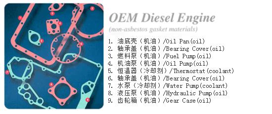 在OEM配套的柴油機(jī)市場中,正確選擇墊片材料需要對材料的設(shè)計性能和應(yīng)用的部件結(jié)構(gòu)有充分的了解。最重要的是材料的性能一定要滿足甚至超過柴油發(fā)動機(jī)的應(yīng)用要求。因特費(fèi)斯墊片公司在為用戶選擇和推薦材料產(chǎn)品時,我們不僅對選擇的部件作全面詳盡的分析,并且對選擇的材料進(jìn)行仿真性的測試,為保證材料產(chǎn)品應(yīng)用的可靠性。