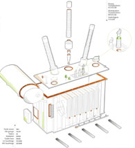 1、電力變壓器(Power transformers) 2、輸電變壓器(Distribution transformers) 3、開關(guān)設(shè)備(Switchgear) 4、箱沿(Tank cover) 5、油箱表(Oil gauge) 6、閥(Valve) 7、散熱器(Radiator) 8、接線盒(Cable box) 9、低壓套管(LV bushings) 10、高壓套管(HV bushings) 11、..... |