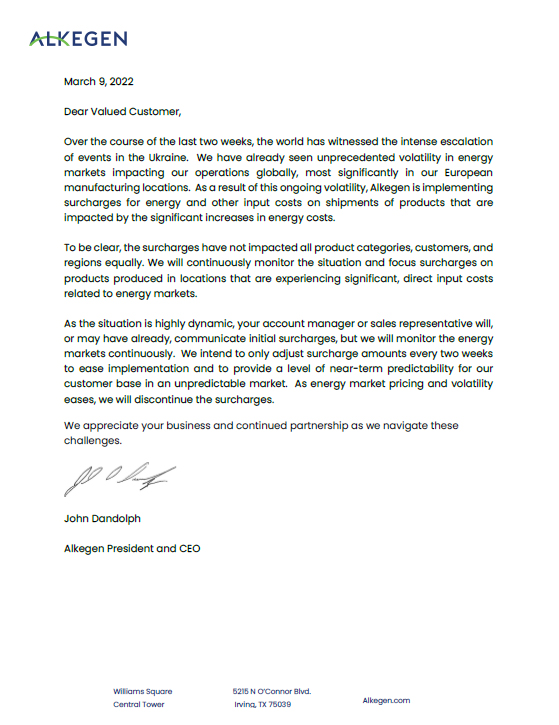 關于美國InterFace材料能源費上調(diào)7.1% 的緊急通知