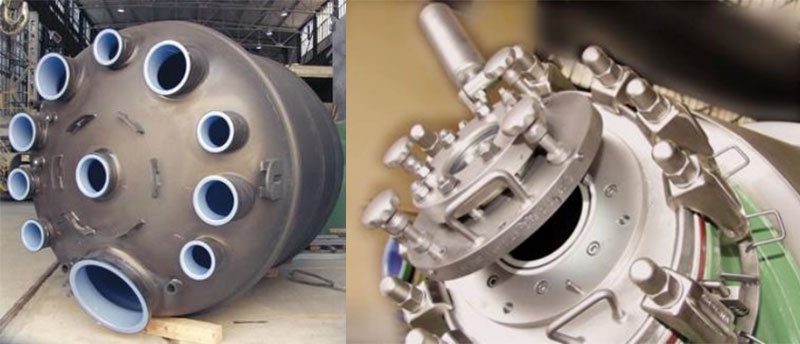 搪玻璃反應(yīng)釜法蘭表面不平整,需要特殊類型的包覆墊。如果選擇錯(cuò)誤的密封墊片或扭矩維護(hù)不當(dāng)都可能導(dǎo)致搪玻璃設(shè)備的損壞。而反應(yīng)釜噴嘴或人孔處強(qiáng)腐蝕性介質(zhì)的微小泄漏也會(huì)滲入法蘭表面,破壞法蘭邊緣/末端的玻璃,進(jìn)而破壞容器本身,因此該處密封顯得尤為重要。