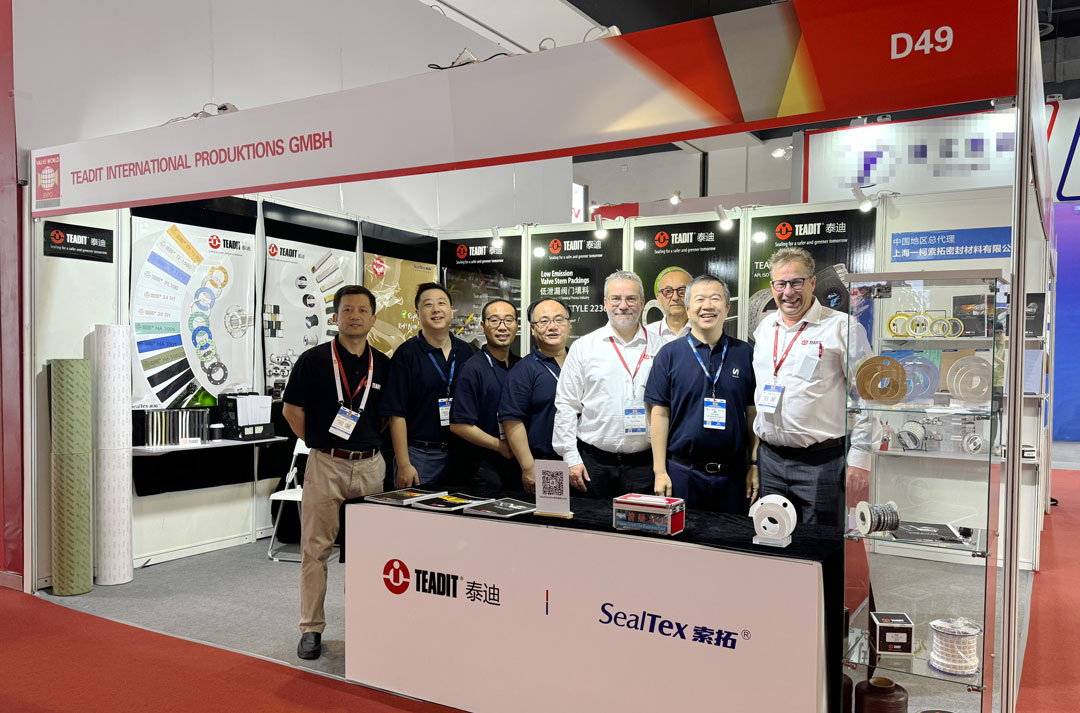 本次展會(huì)展出了帶有TEADIT® TAGTM 標(biāo)記的低逸散性可追溯盤根2848,以及API 622 測(cè)試平均泄漏率僅為2ppm、ISO 15848-1 密封級(jí)別A的2236盤根;多款膨體四氟和改性四氟材料,例如:24SH膨體四氟,TF1570\TF1580\TF1590改性四氟,以及各種符合BAM氧氣測(cè)試、PFAS Free,適用于超低溫工況、低泄漏等要求的密封產(chǎn)品。